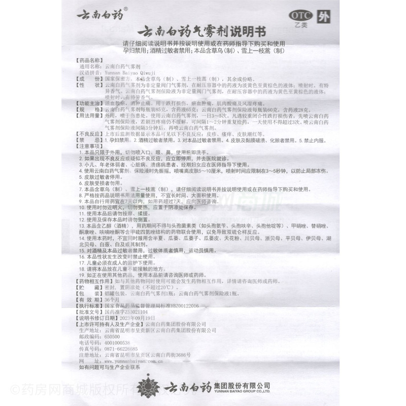 处方分类:乙类OTC | 储存条件:阴凉 | 上市许可持有人:云南白药集团股份有限公司 |